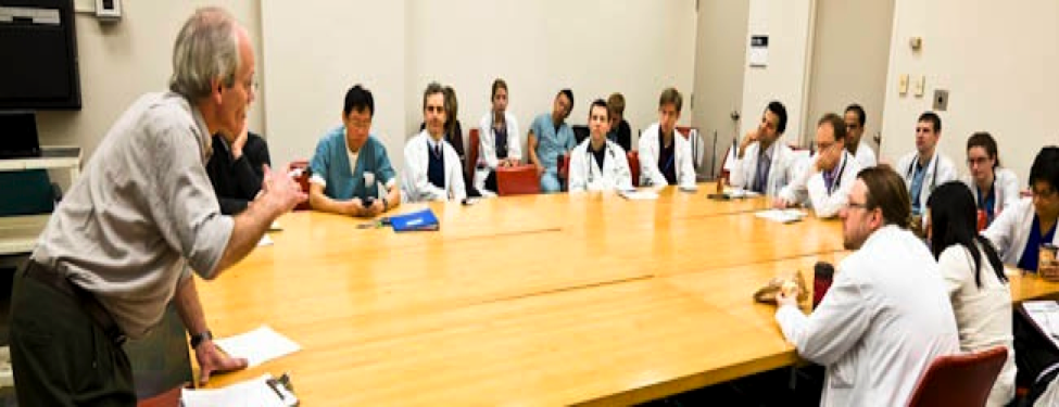 Time for Morning Report. Here, a staff physician teaches approximately 20 residents and med students about an interesting case that came in the previous night. It helps to be a morning person in this pressure-packed situation…you have to be able to answer questions on the spot in front of all your peers and staff!!!