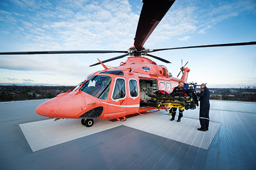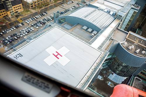Patients arrive at Sunnybrook by air ambulance from all over the province for urgent trauma care, burn care and high-risk maternal and newborn care. Whereas the ground-level helipad requires coordination with a land ambulance to take patients into the hospital through the Emergency Department, the rooftop helipad enables transportation directly from the platform to treatment areas within the hospital.