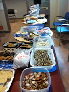 (My apologies for the blurry picture; my hands were shaking at the thought of all those cookies.) Now, this doesn’t include the 300+ cookies that were behind me. To all the staff members who made these delicious treats … thank you!
